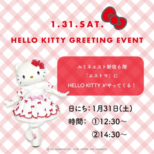 サンリオの大人気キャラクターとの初のコラボレーションアイテムの発売を記念して、1月31日(土)に、ルミネエスト新宿6階「エストマ」にて、ハローキティとのグリーティングイベントを実施いたします。