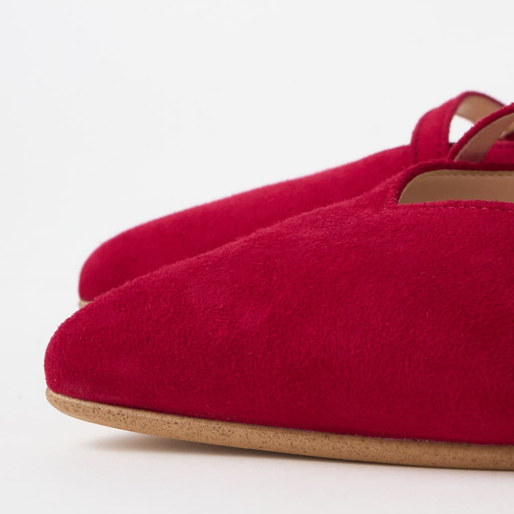 | 革の裏側を細かいサンドペーパーでこすって起毛させたもの。毛足が短く、柔らかな手触りが特徴。 |