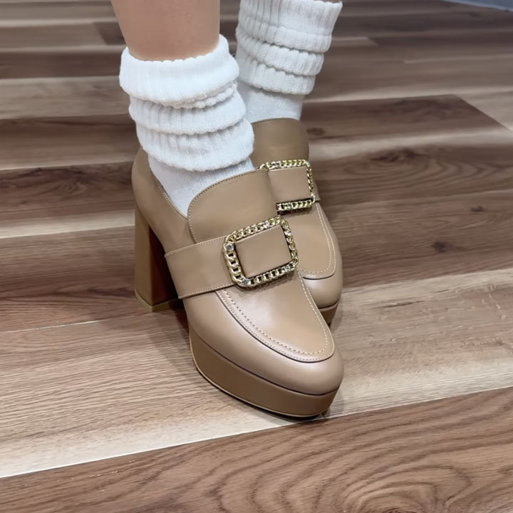 ・パンプスなどのかかと部分にある穴は、製造工程上発生する穴であり、欠陥ではございません。