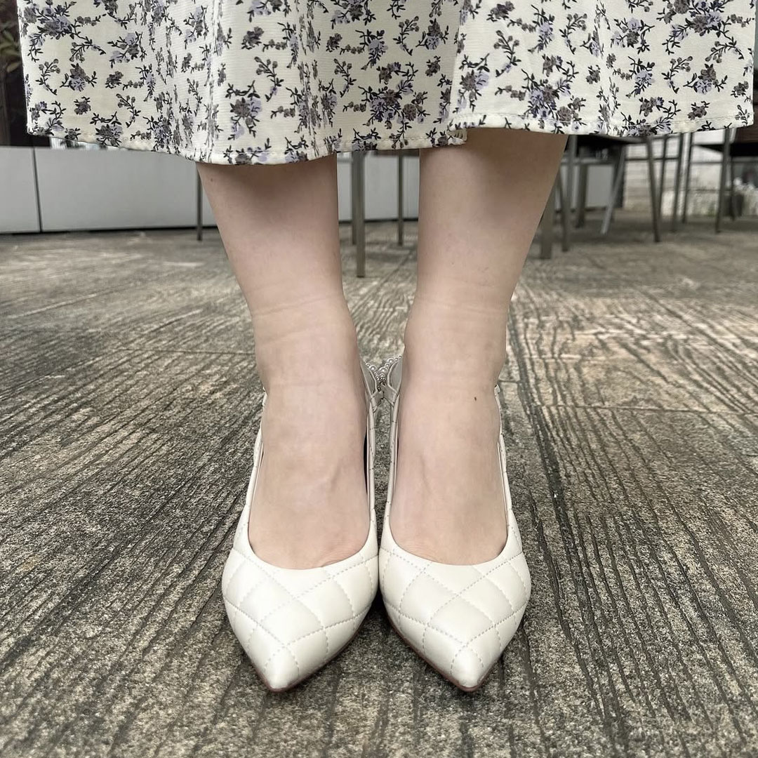 ・パンプスなどのかかと部分にある穴は、製造工程上発生する穴であり、欠陥ではございません。