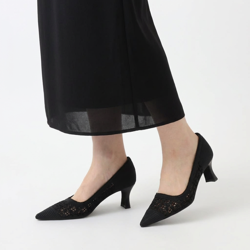 ・パンプスなどのかかと部分にある穴は、製造工程上発生する穴であり、欠陥ではございません。
