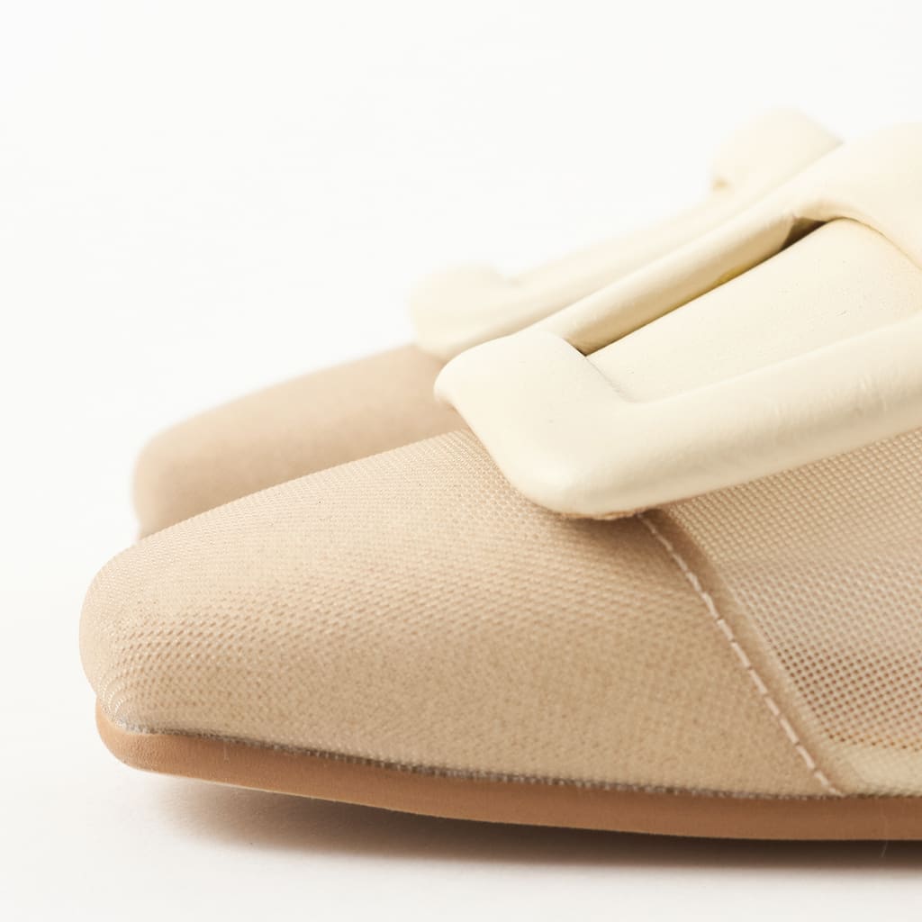 ・本体:チュール 履き口、バックル、ヒール:牛革