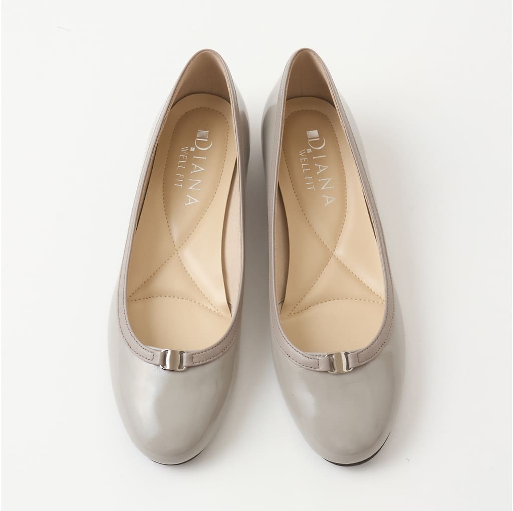 靴は、足長、足囲、足幅が設計された「木型」と呼ばれる靴型をベースに製作されます。ダイアナではブランドごとに、木型に特徴があります。「DIANA」を含む当社のブランドのほとんどは、JIS規格の女性「D木型」が目安となっておりますが、「DIANA WELLFIT」は「EE木型」となっており、足幅の広いタイプです。
