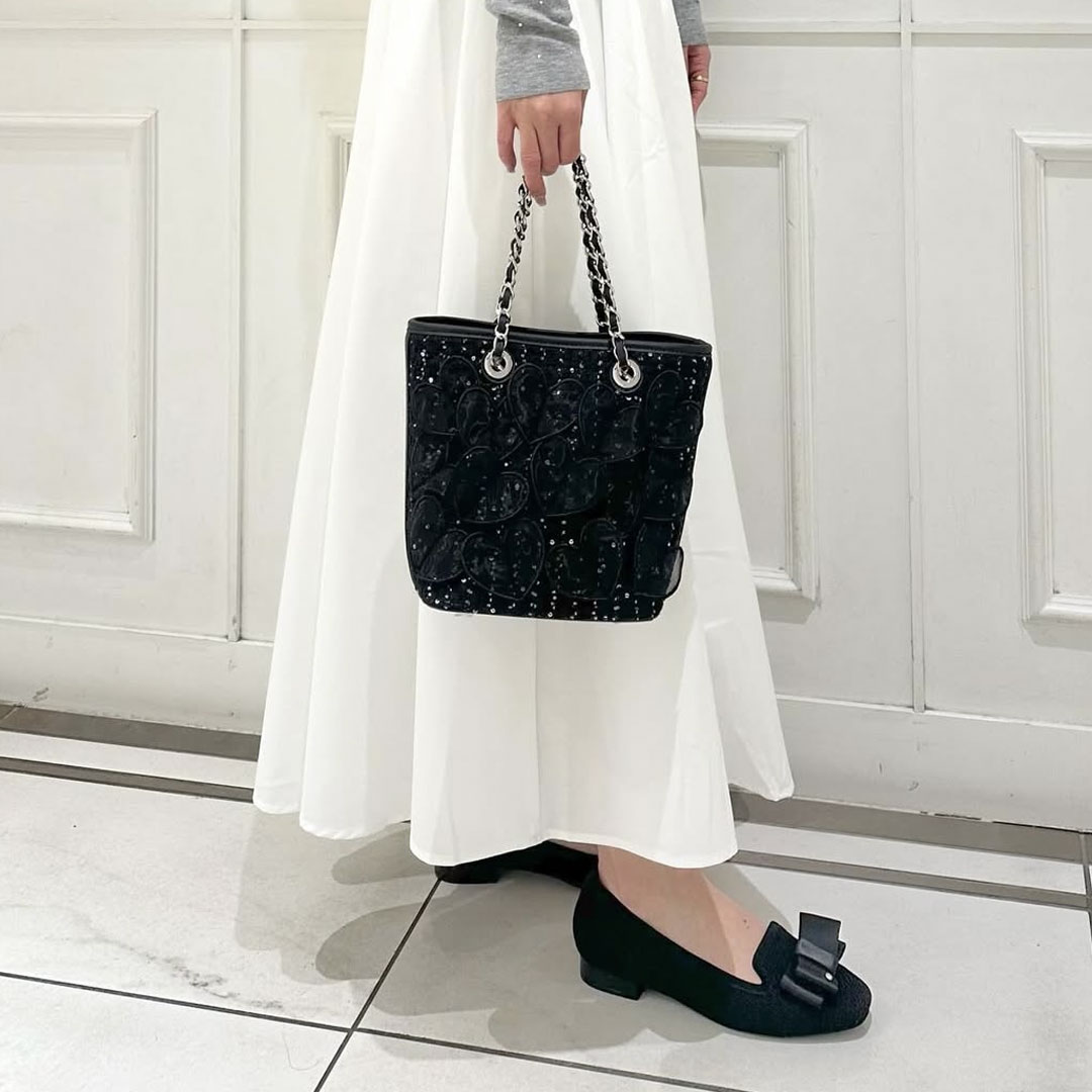 色・素材:ネイビーツィードニット/クロサテンリボン