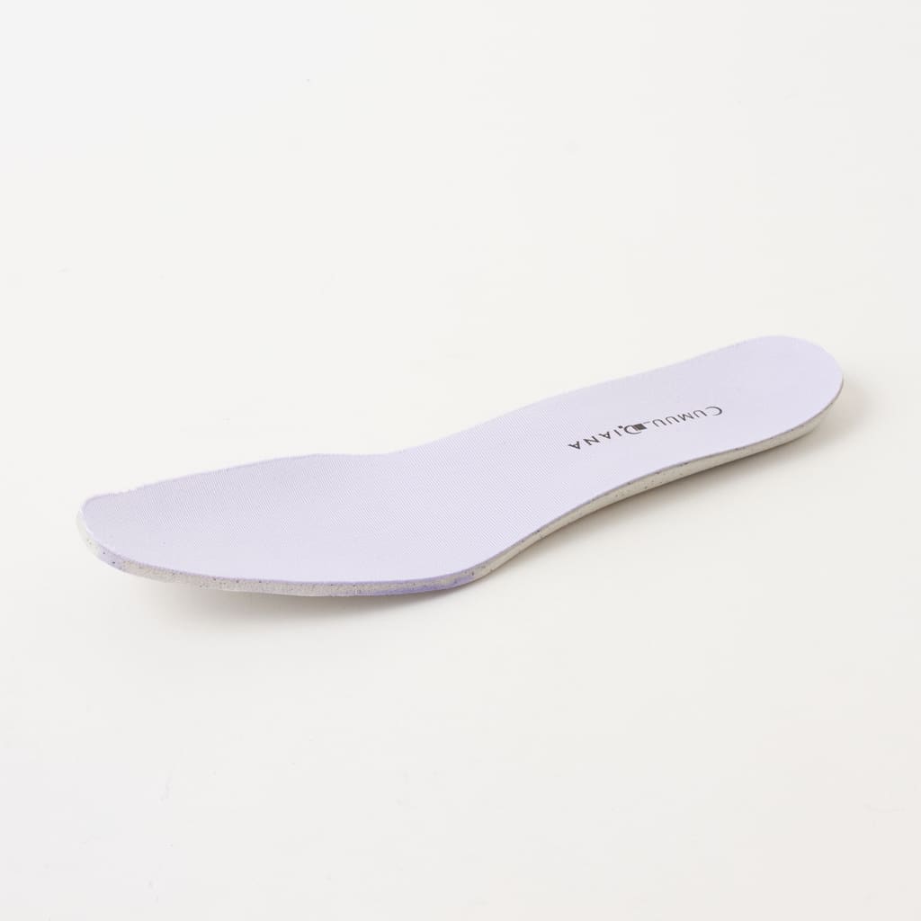 ・足裏の形状に合わせたカップインソール入り。かかと部分のくぼみで足のブレを防ぎます。