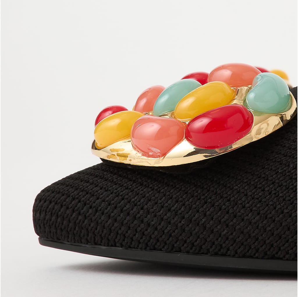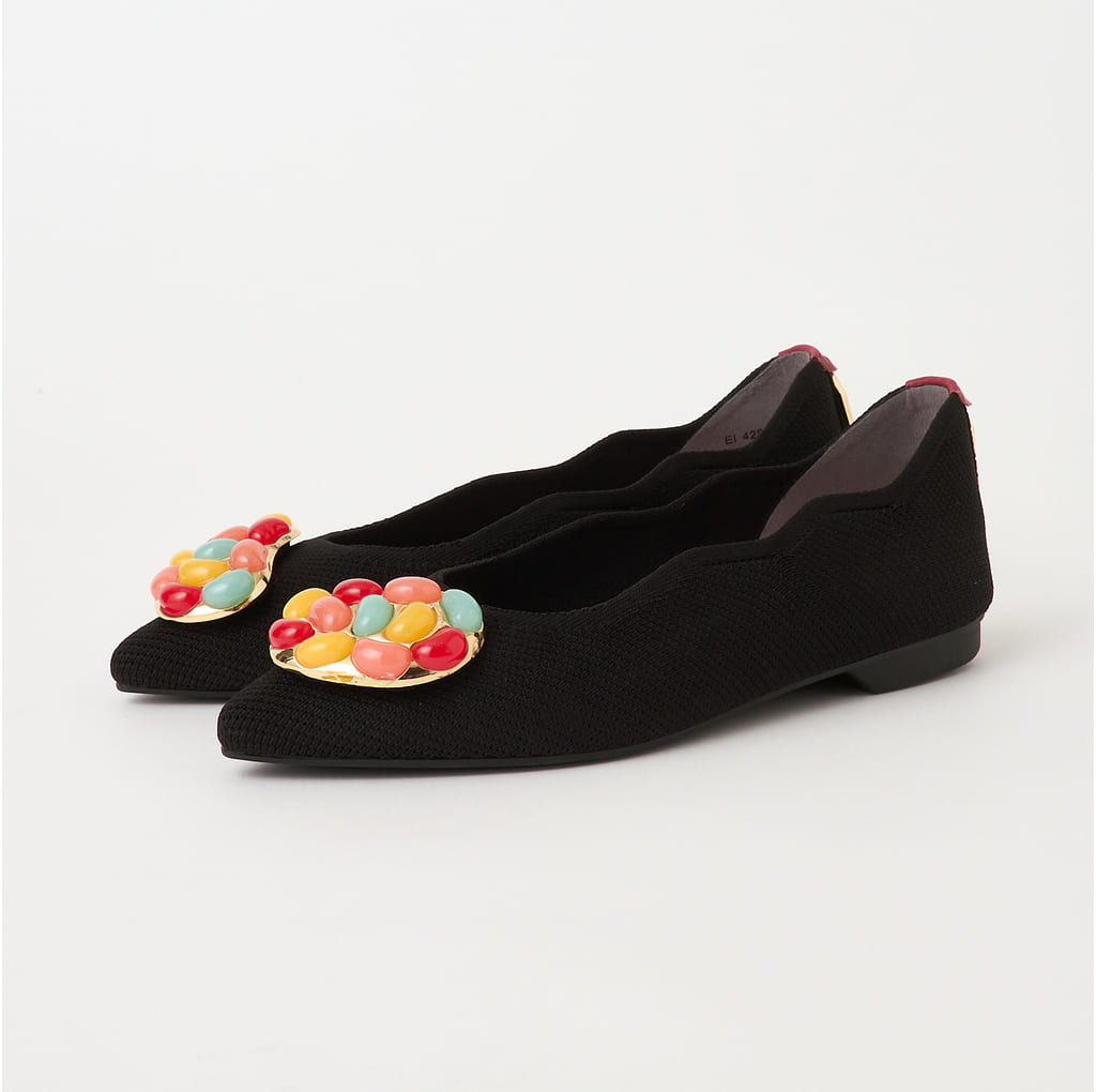 ・トウ先のビジュー、かかとのプレートは繊細な作りになっています。過度な衝撃にはご注意いただきご着用ください。