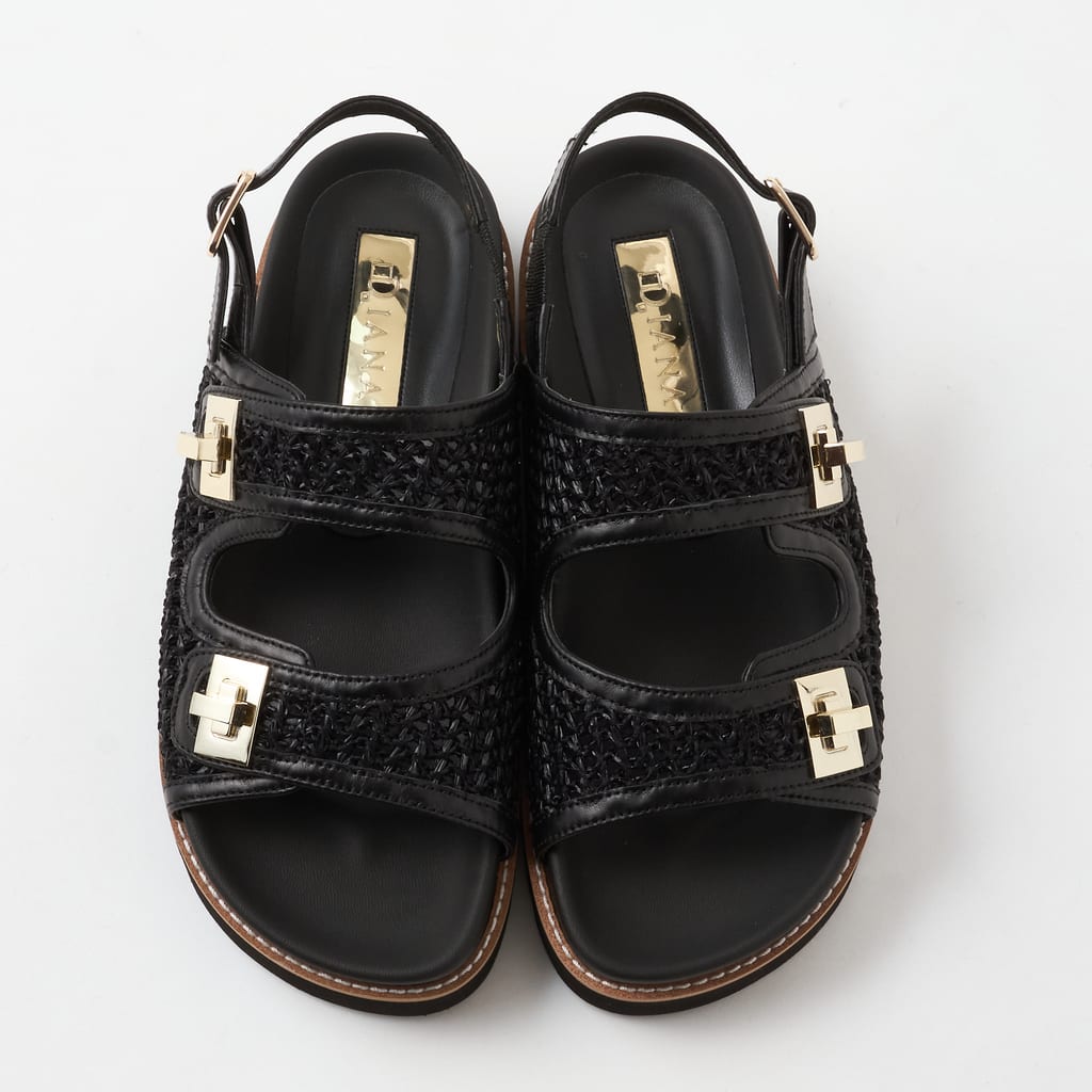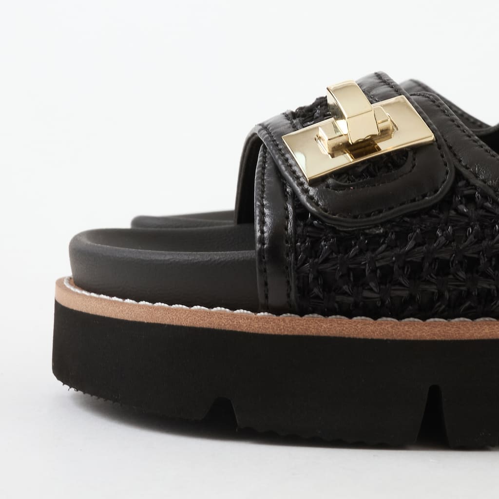 ・ターンロック金具は固定のため開閉はできません。無理に捻りますと破損の可能性がございます。ラフィア調素材は水に濡れると色落ちや色移りの可能性がございます。また雨の日のご着用は極力お避け下さい。