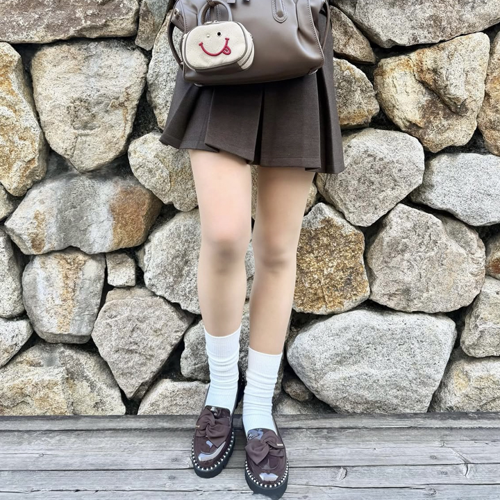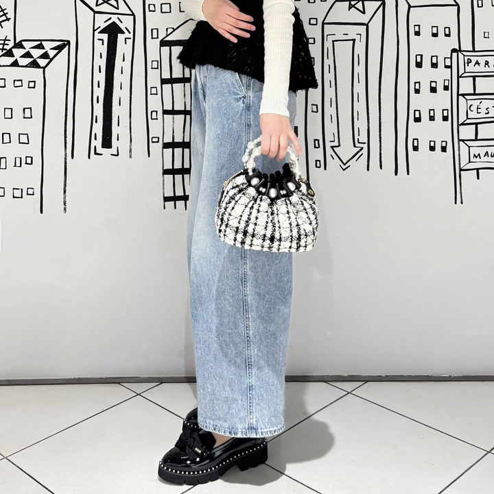 ・リボンは本体に固定されています。無理に引っ張ったりせず、また引っ掛け等には十分ご注意ください。底周りのパールは強い衝撃や引っ掻けにより破損する可能性がございますので十分ご注意ください。
