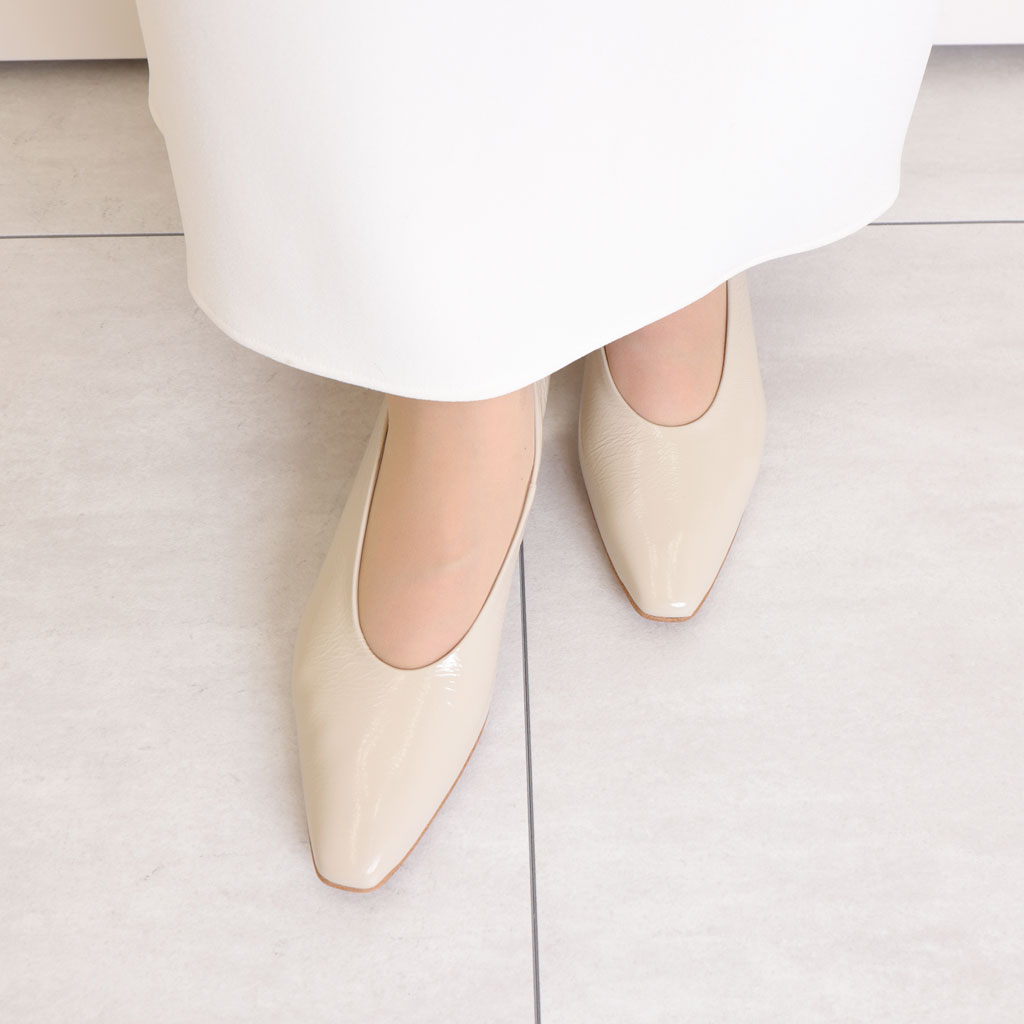 靴は、足長、足囲、足幅が設計された「木型」と呼ばれる靴型をベースに製作されます。ダイアナではブランドごとに、木型に特徴があります。「DIANA」を含む当社のブランドのほとんどは、JIS規格の女性「D木型」が目安となっておりますが、「DIANA WELLFIT」は「EE木型」となっており、足幅の広いタイプです。