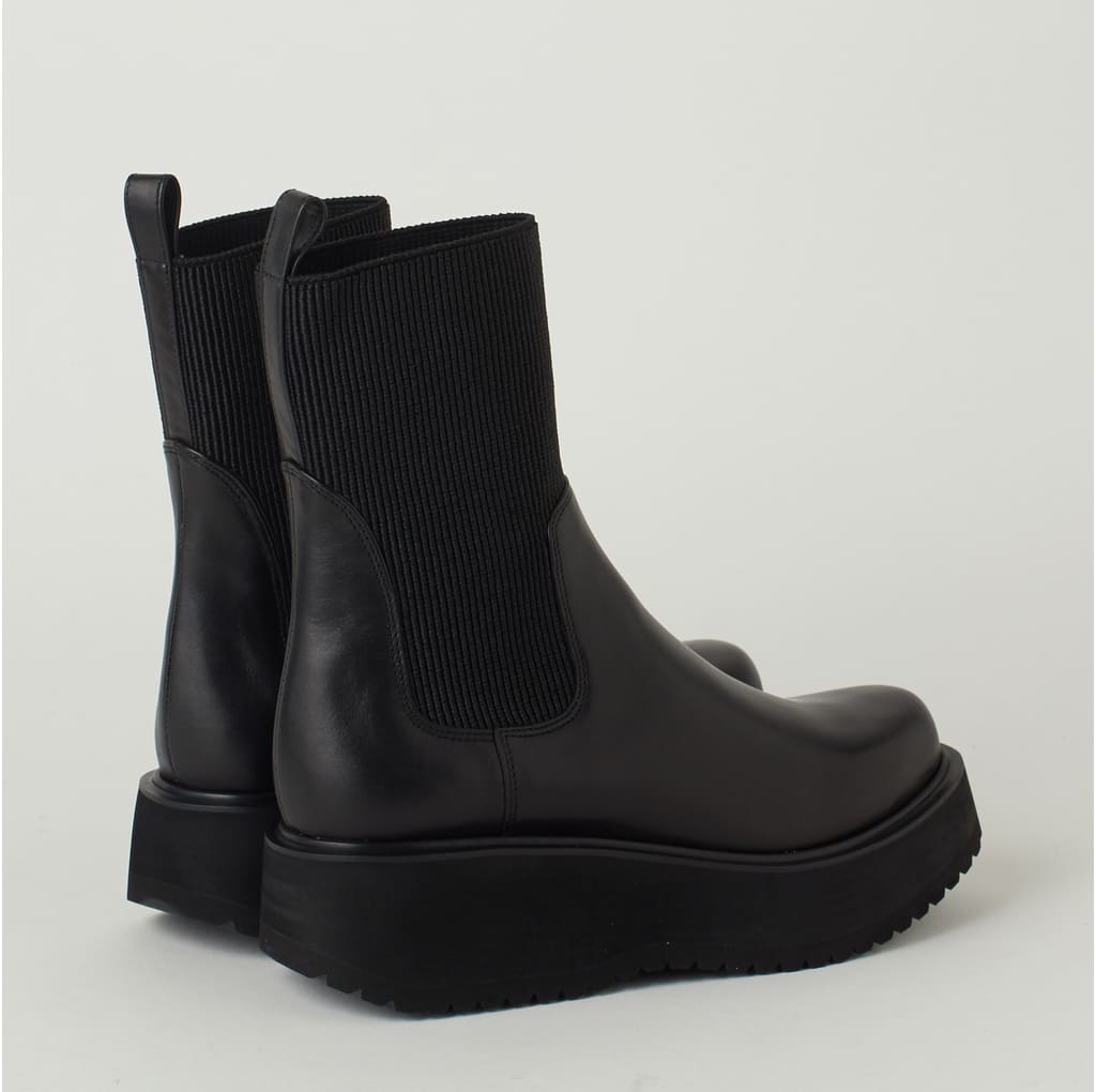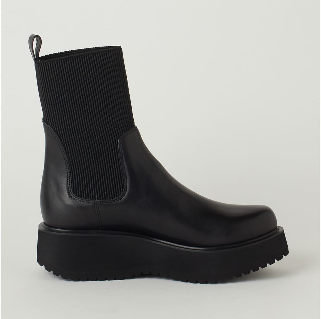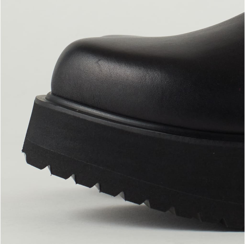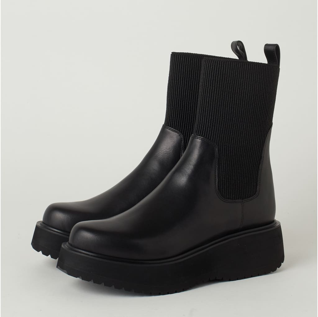 ・筒周り全体が伸縮性のある素材のため、そのまま脱ぎ履き可能なブーツです。