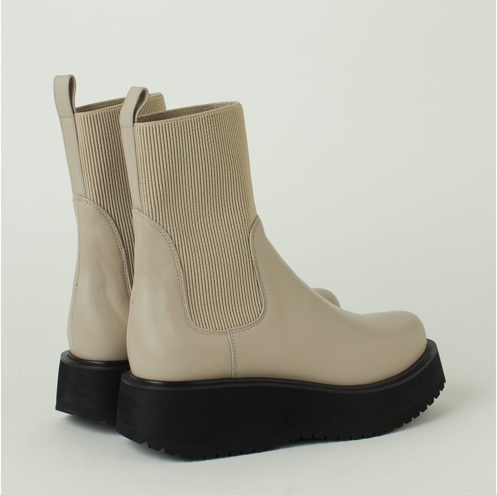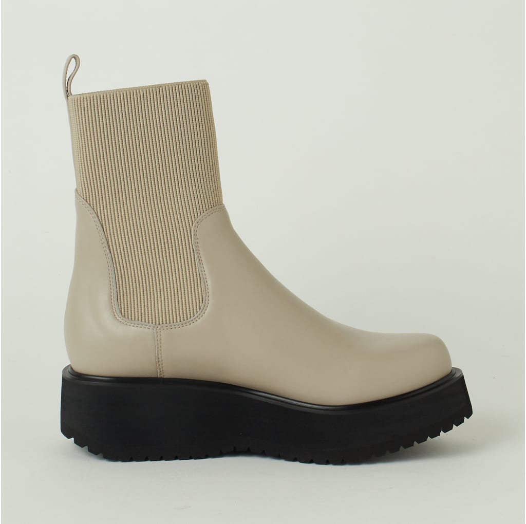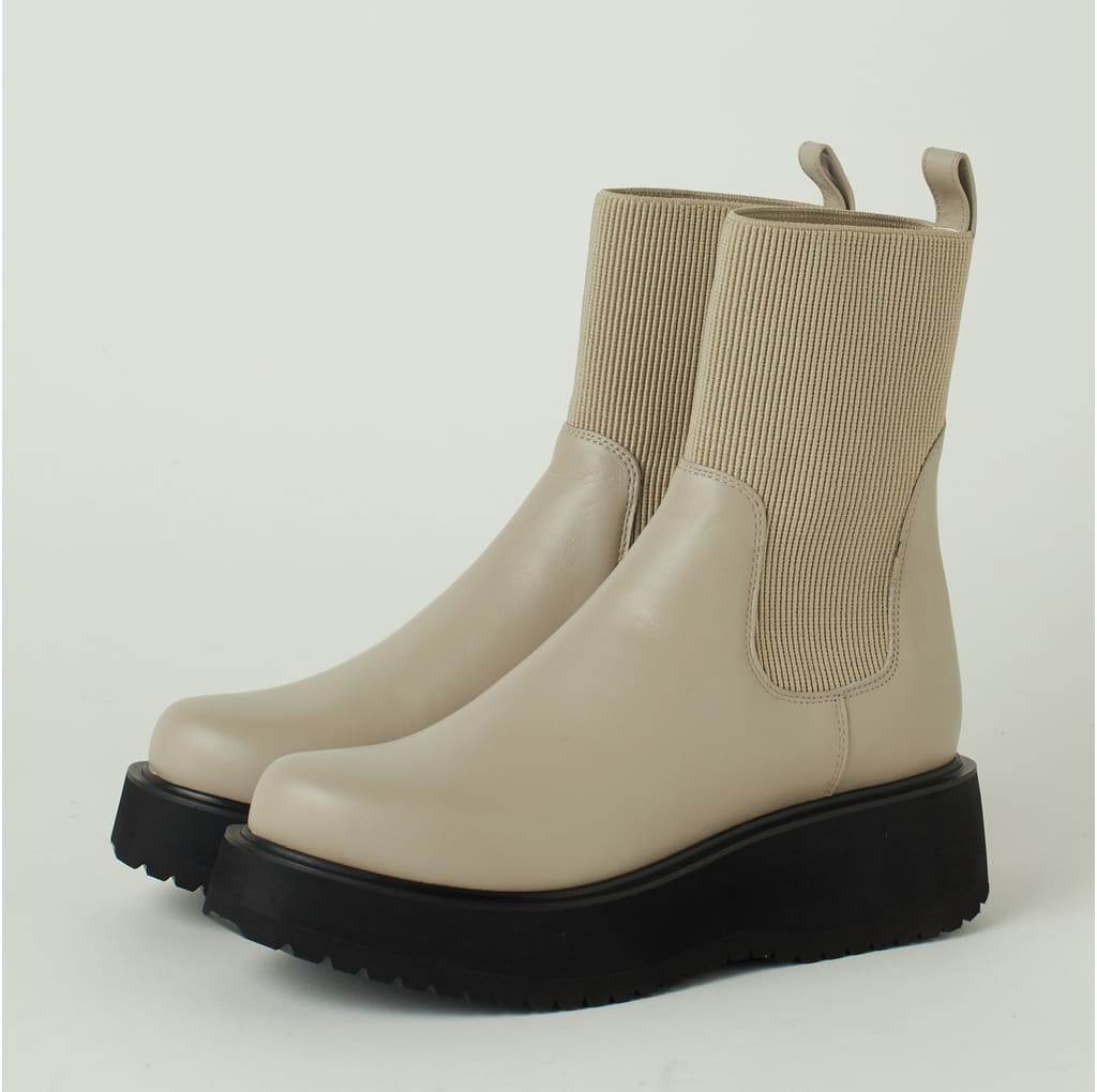 ・筒周り全体が伸縮性のある素材のため、そのまま脱ぎ履き可能なブーツです。