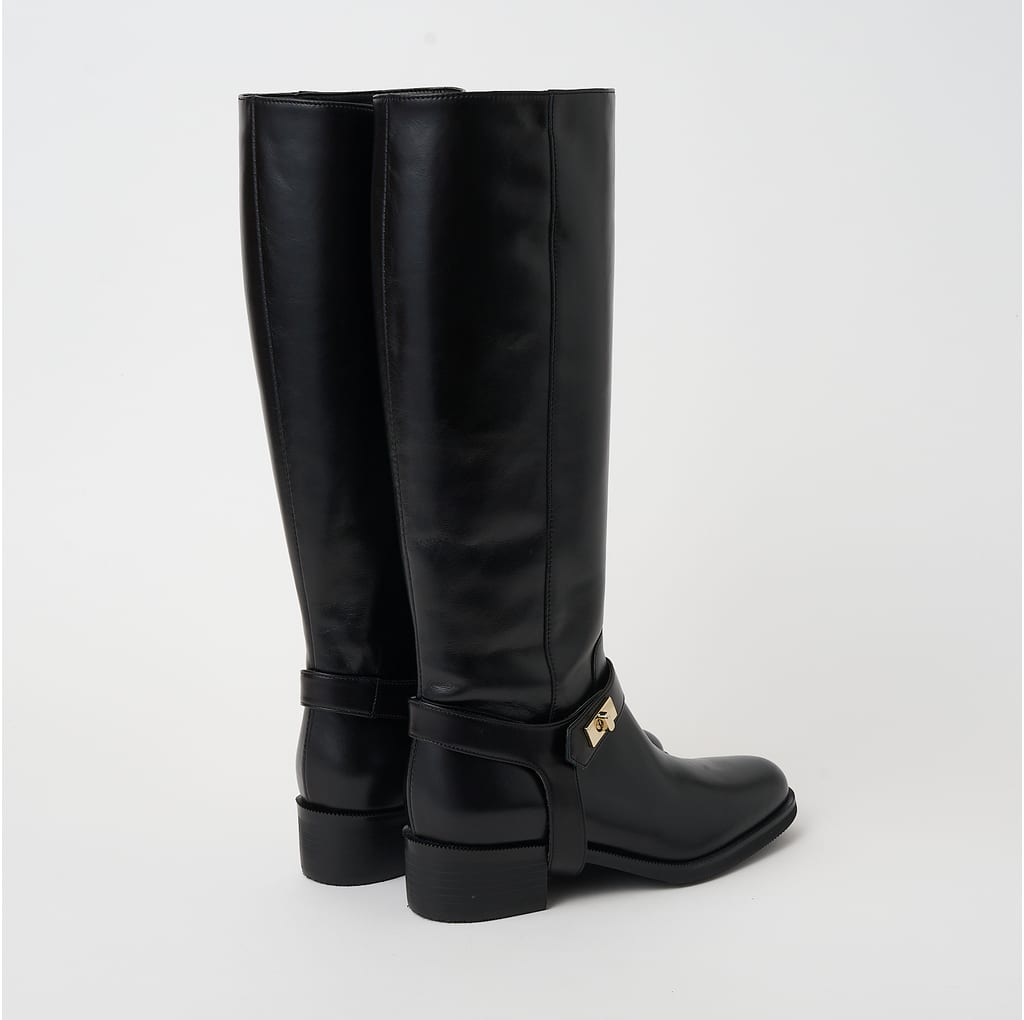 ・内側にファスナーがあるデザインです。ヒールはスタックヒールです。