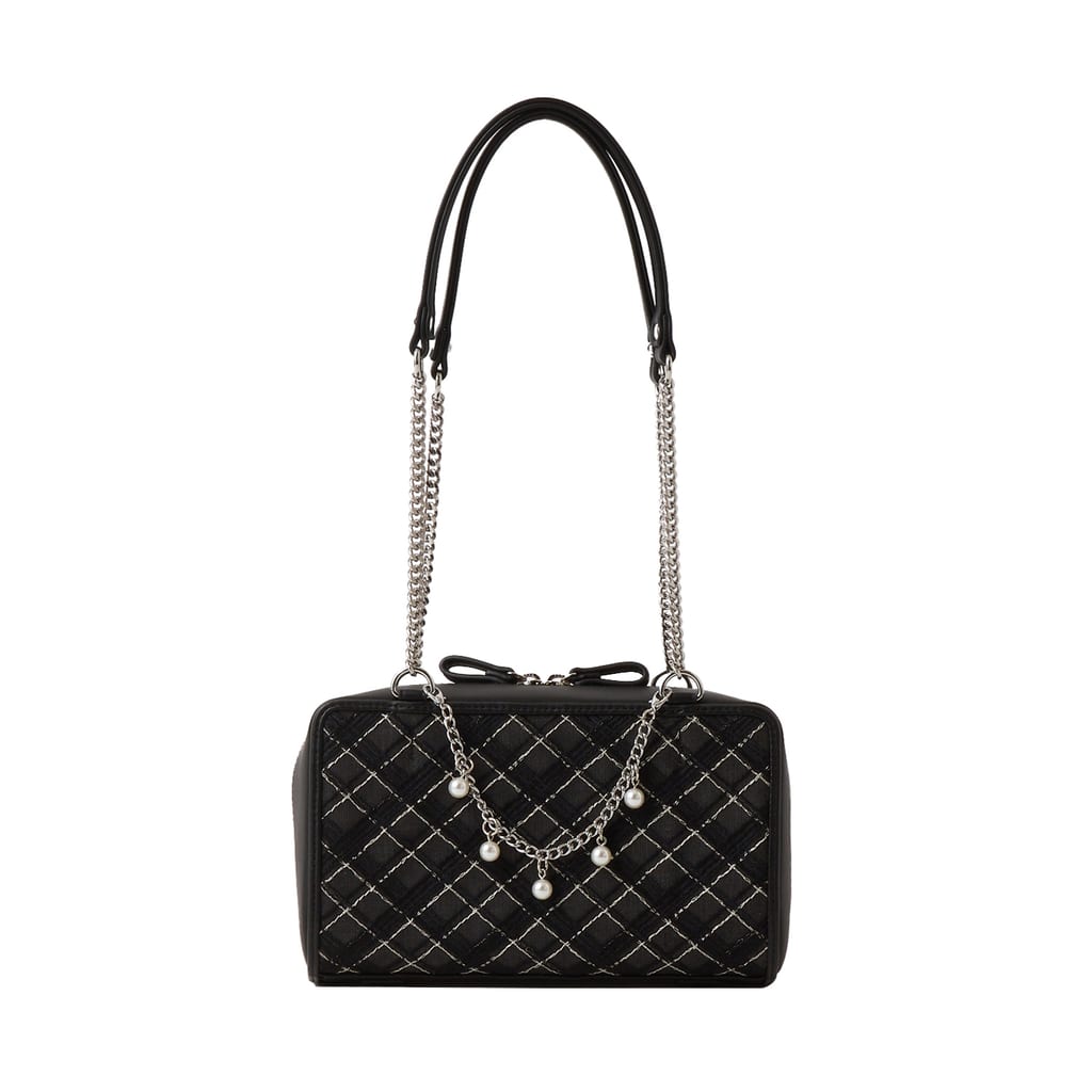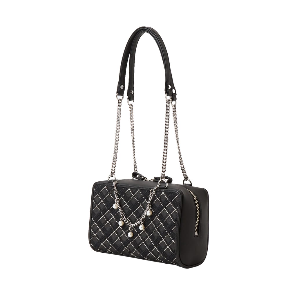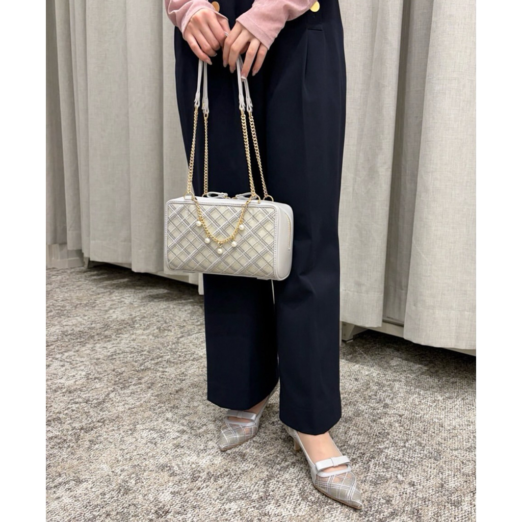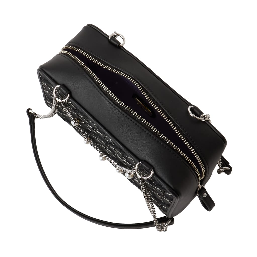 ・ショルダーベルトは付属していません。ハンドルの取り外し、長さはご調節できません。飾りのパールチェーンはお取り外し可能です。