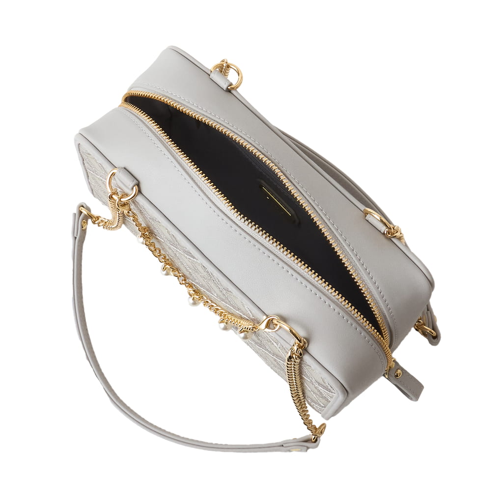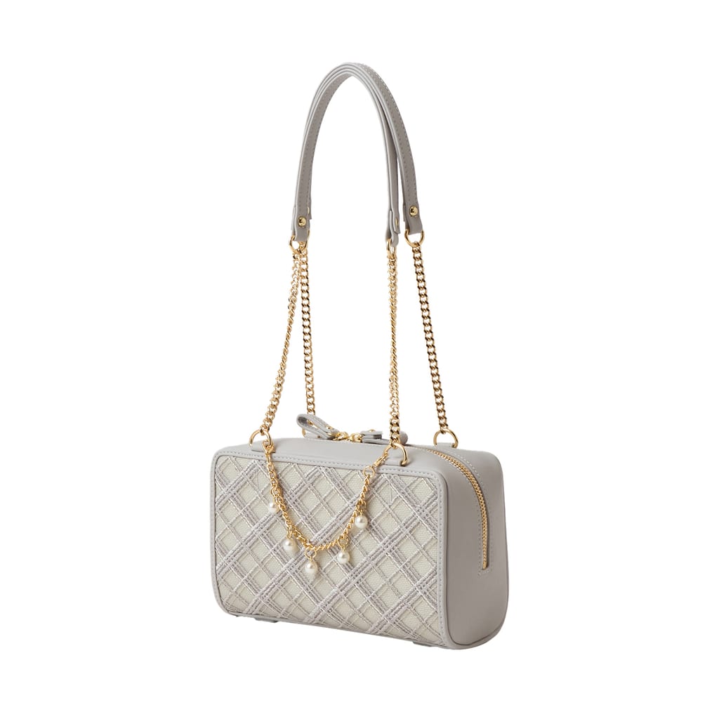 ・ショルダーベルトは付属していません。ハンドルの取り外し、長さはご調節できません。飾りのパールチェーンはお取り外し可能です。