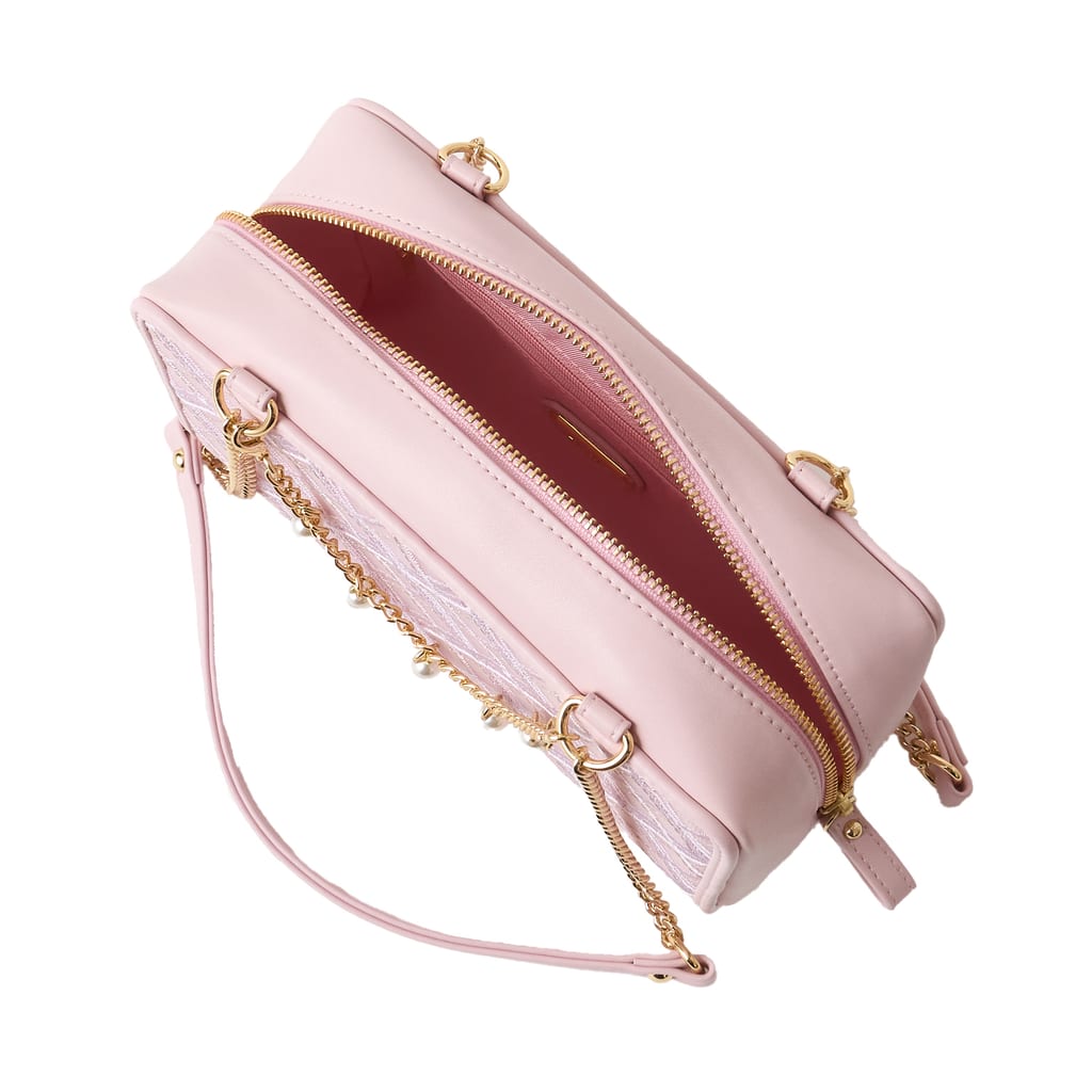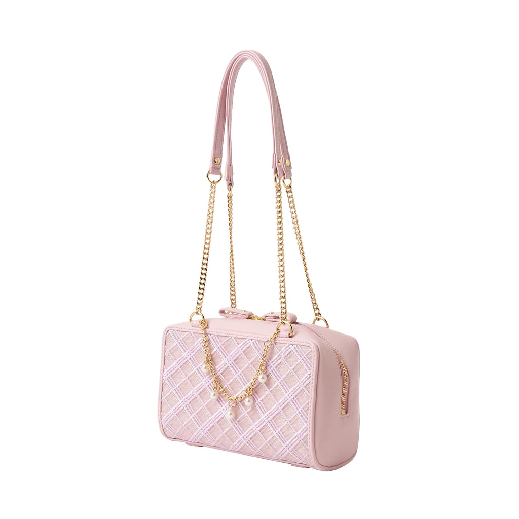 ・ショルダーベルトは付属していません。ハンドルの取り外し、長さはご調節できません。飾りのパールチェーンはお取り外し可能です。