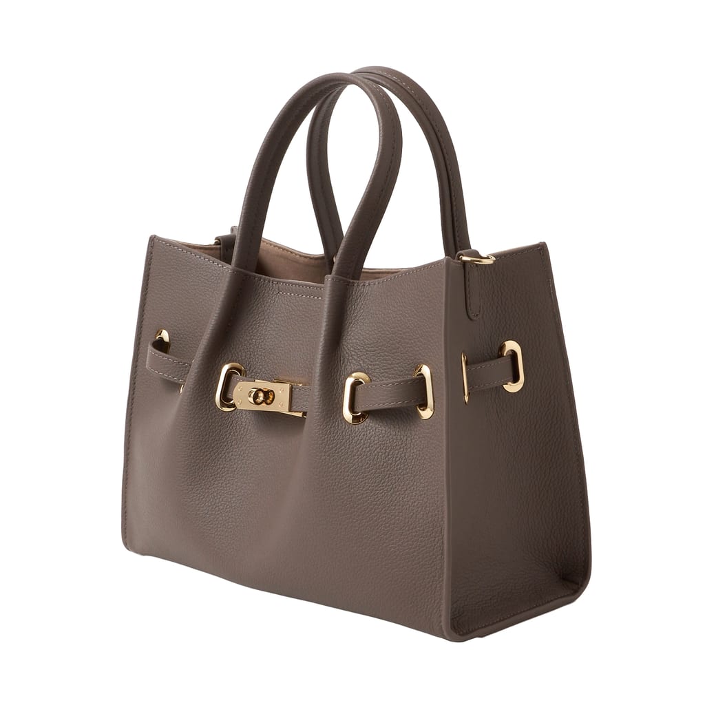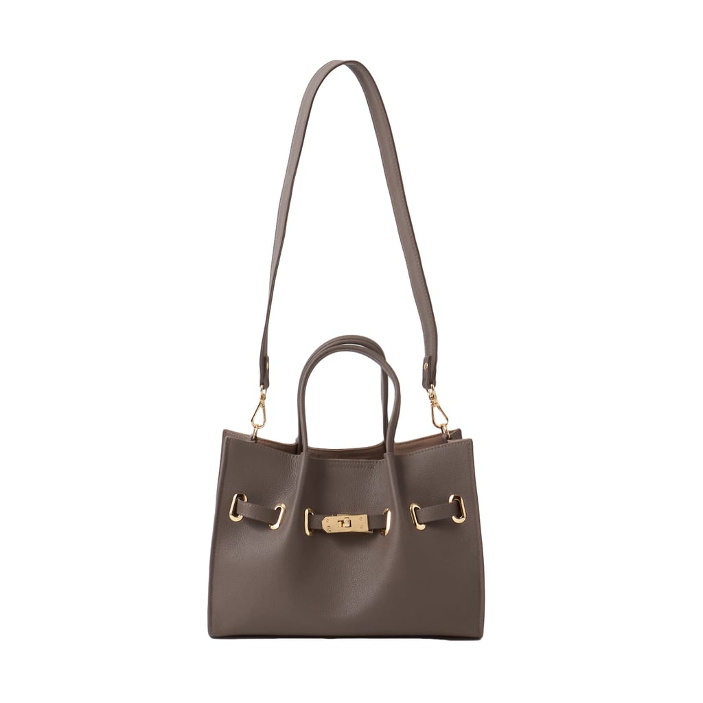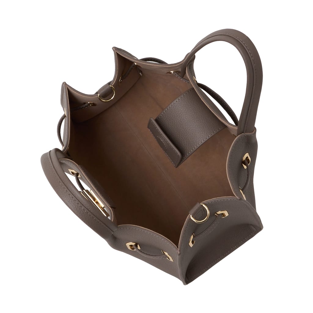 ・取り外し可能なショルダーベルトが付属しています。ベルトはバッグ本体サイドの金具に装着してご使用ください。ベルト穴はなく、立ち上がりは約42cmです。