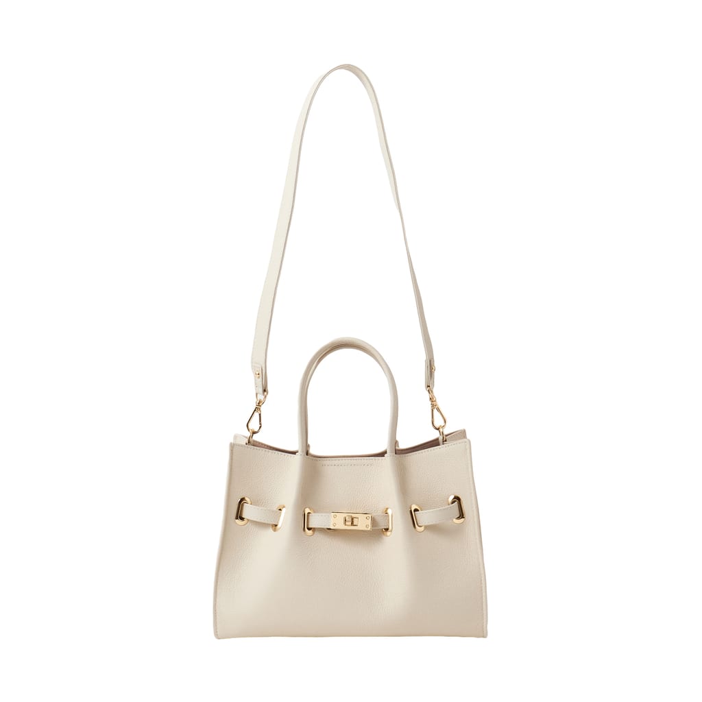 ・取り外し可能なショルダーベルトが付属しています。ベルトはバッグ本体サイドの金具に装着してご使用ください。ベルト穴はなく、立ち上がりは約42cmです。