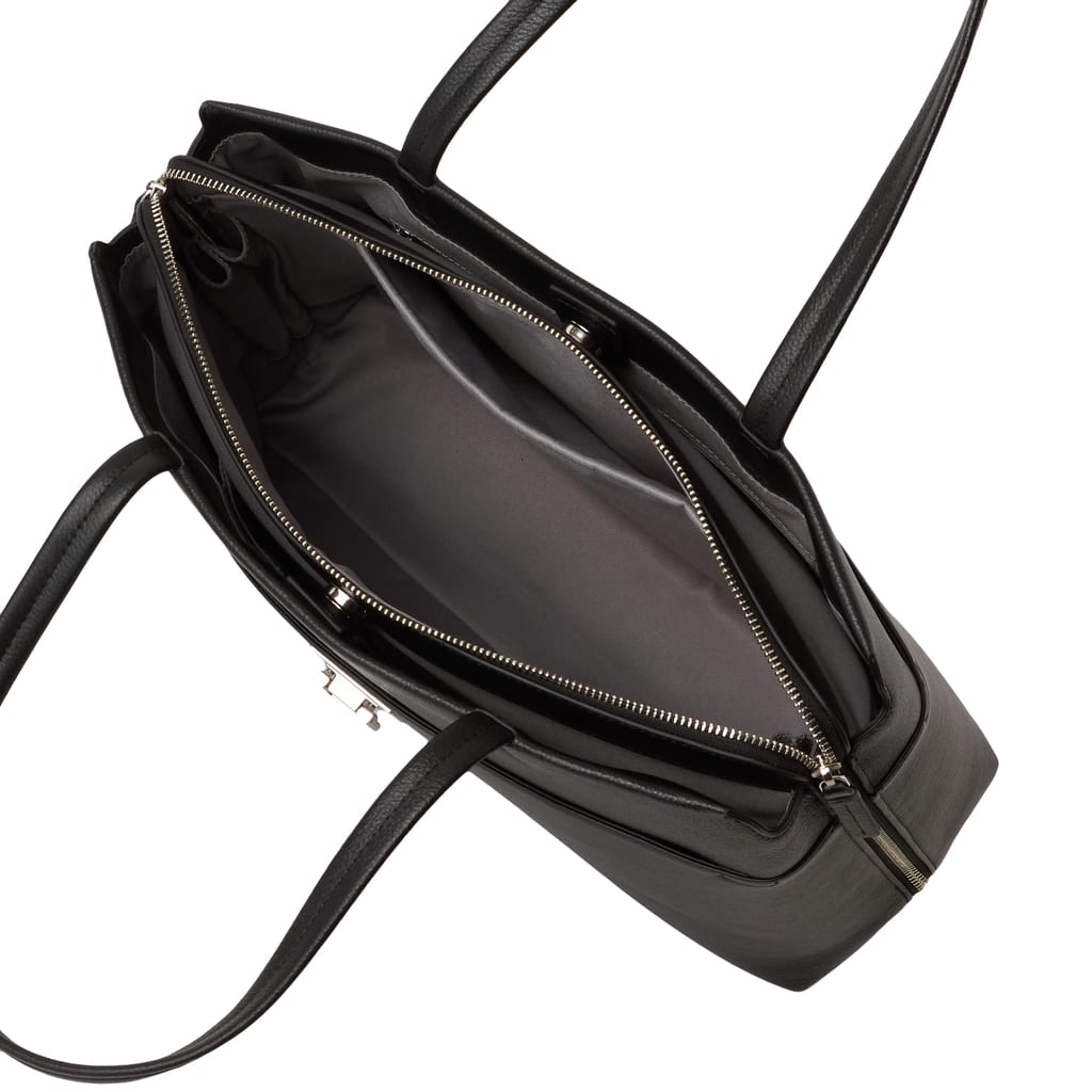・インナーはポリエステル素材。前胴側に金具開閉式のポケット×1、背胴側にマグネット式のポケット×1、前胴側にあおりポケットあり。あおりポケット内部にオープンポケット×2。本体内部にオープンポケット×3、うち背胴側ポケットは仕切り部分にスポンジ入りでガジェット対応です。