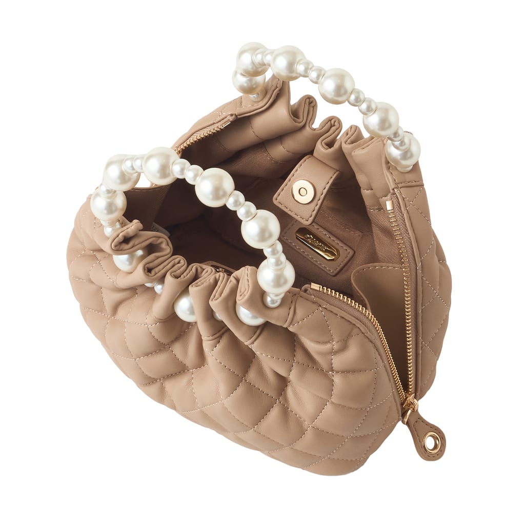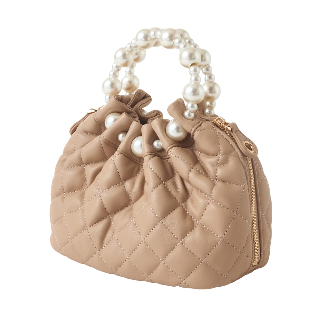 ・パールハンドルはぶつける等強い力が加わることで破損する可能性がございます。ご使用の際は十分にご注意ください。生地素材は水・汚れやしみ、摩擦や引っ掛け等には弱いためご使用の際にはご注意ください。