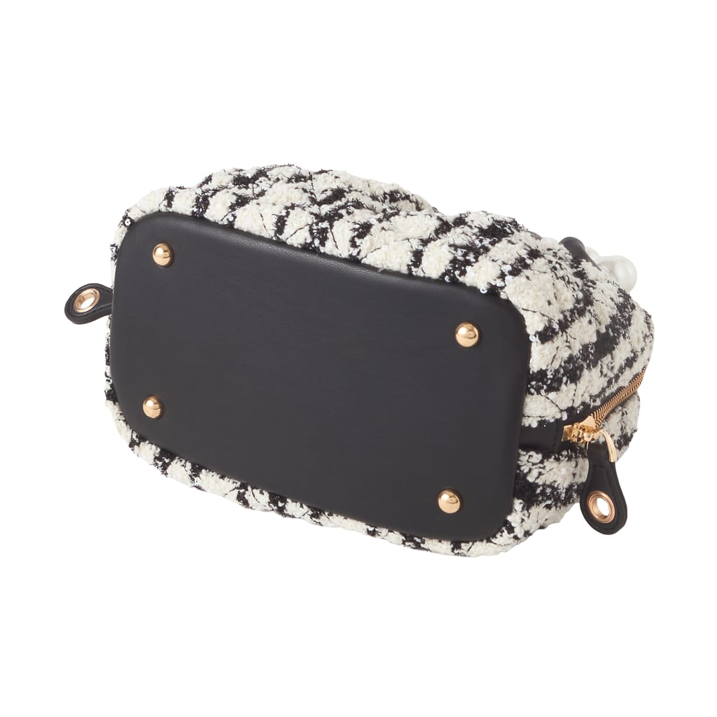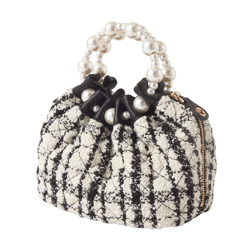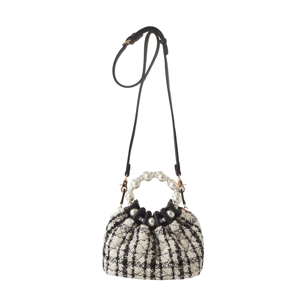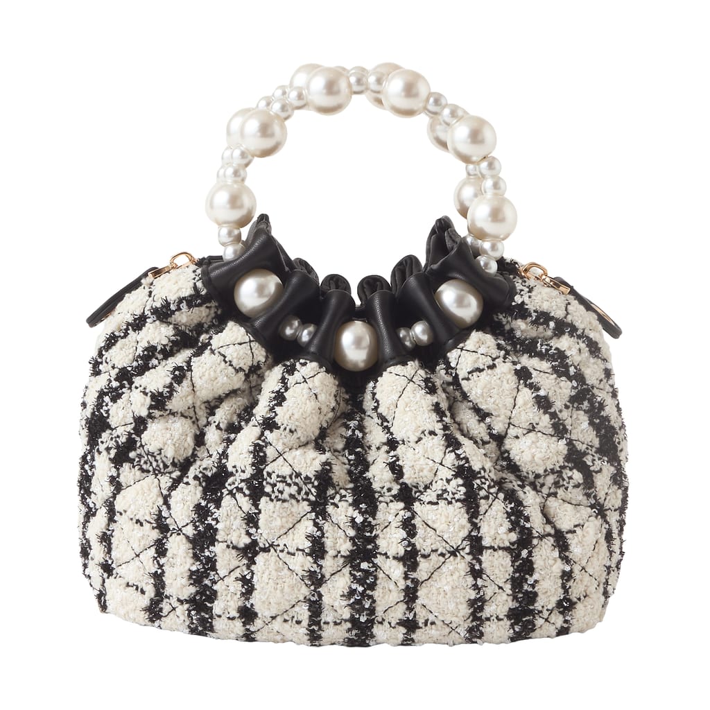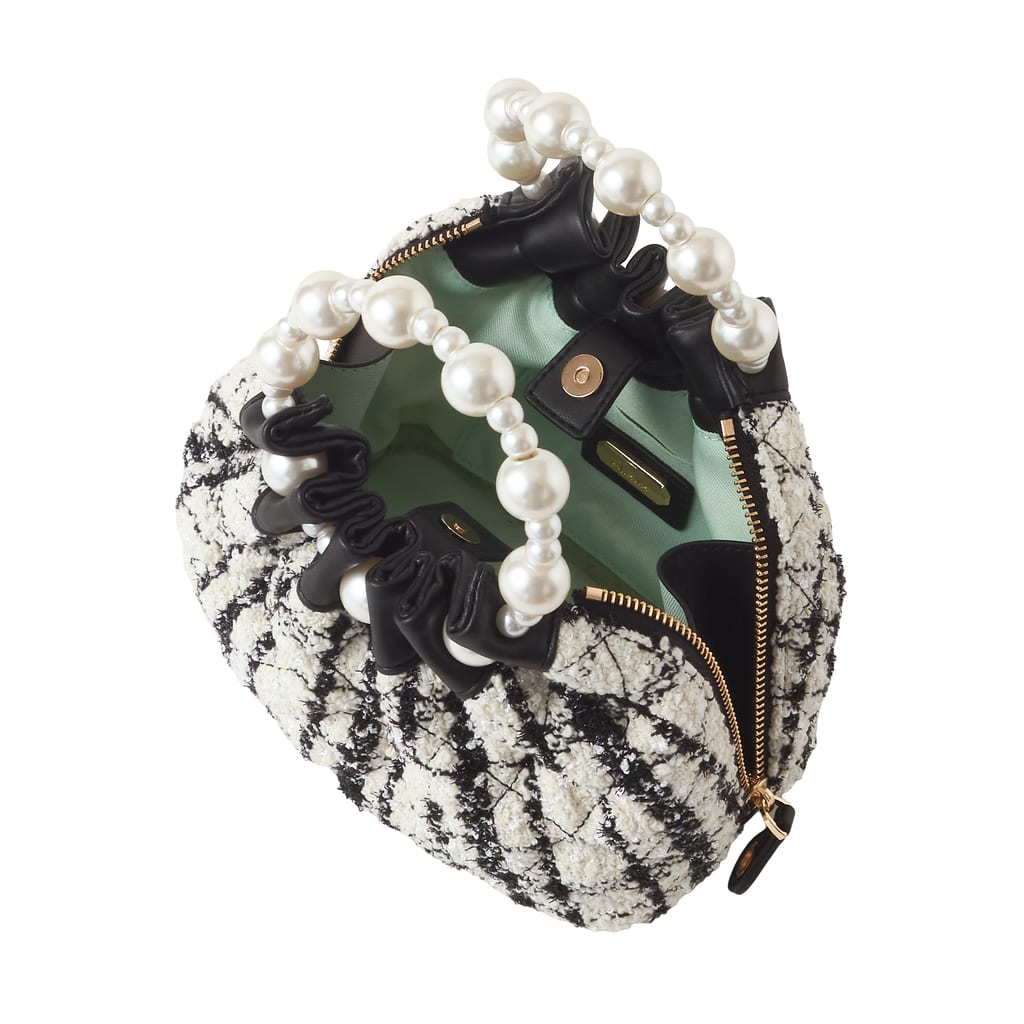 ・パールハンドルはぶつける等強い力が加わることで破損する可能性がございます。ご使用の際は十分にご注意ください。生地素材は水・汚れやしみ、摩擦や引っ掛け等には弱いためご使用の際にはご注意ください。