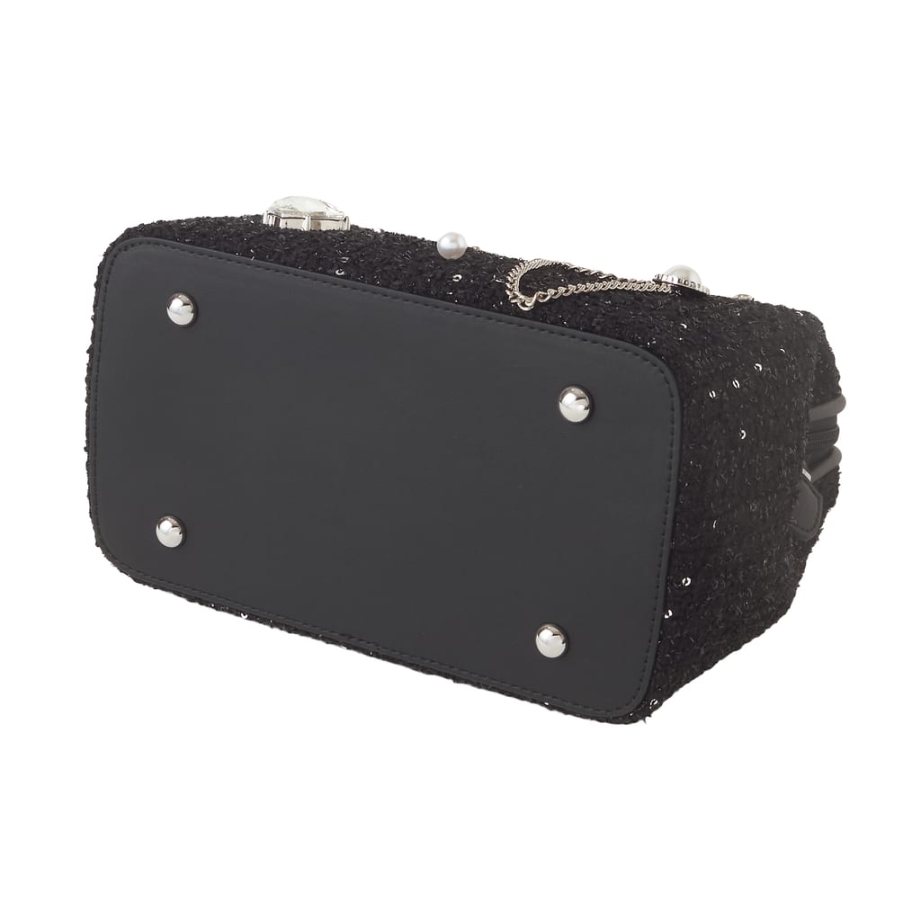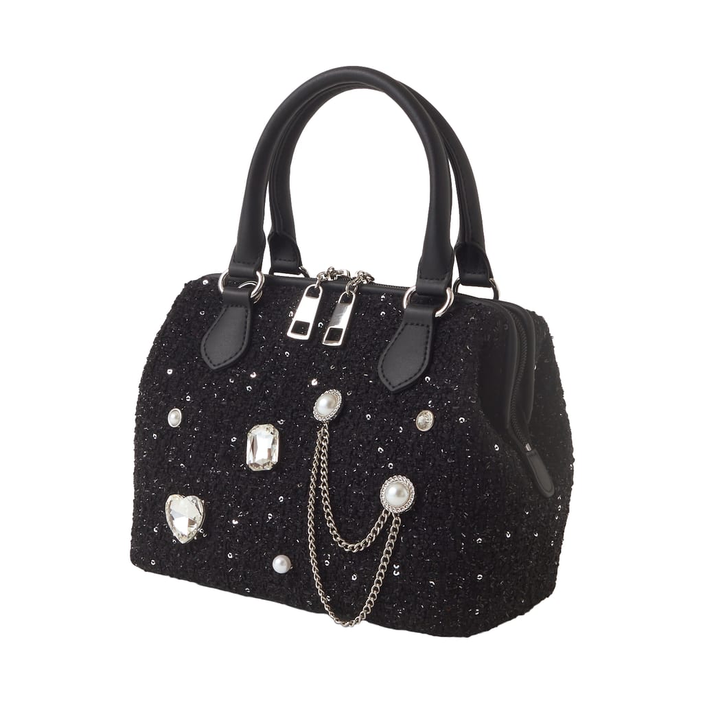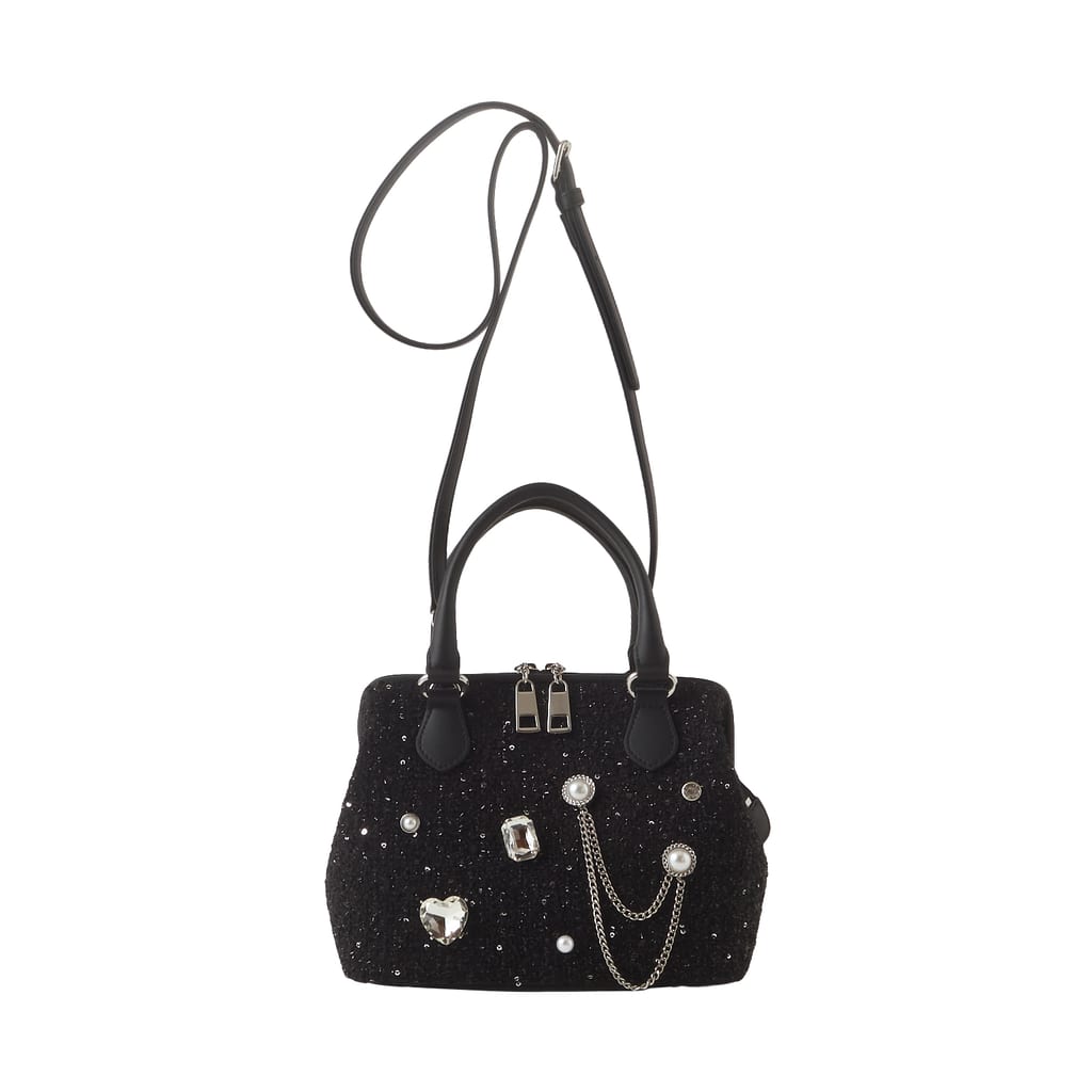 ・ツイード素材は汚れや水濡れ、ひっかけ等には弱い素材です。飾りは固定されています。強い衝撃が加わると破損する恐れがございますのでご注意ください。またチェーンのひっかけにはお気を付けください。