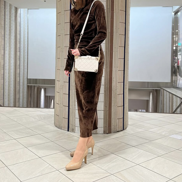・パンプスなどのかかと部分にある穴は、製造工程上発生する穴であり、欠陥ではございません。