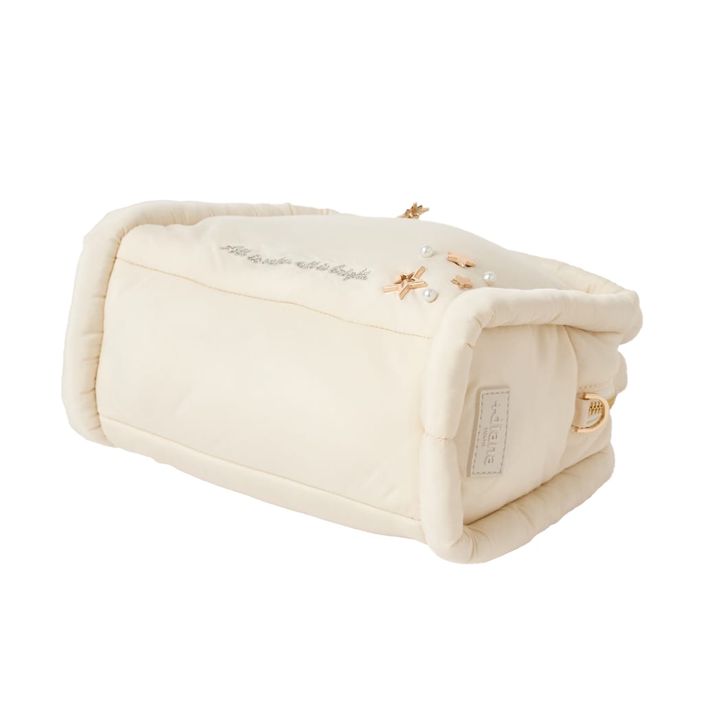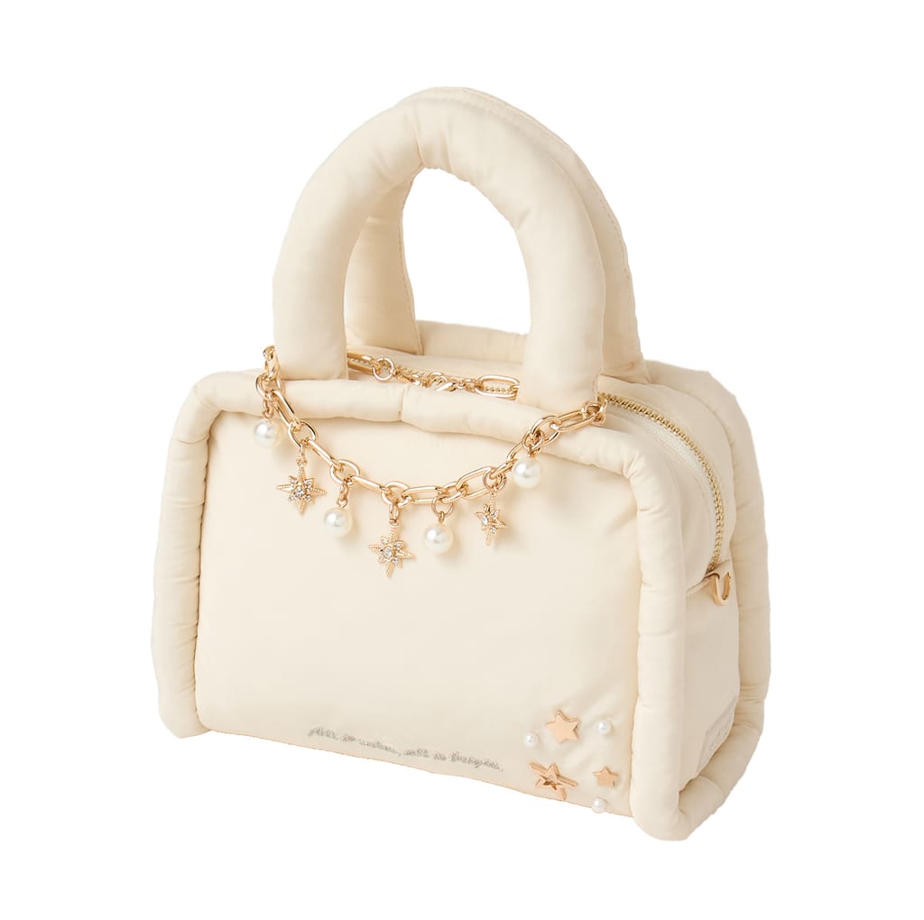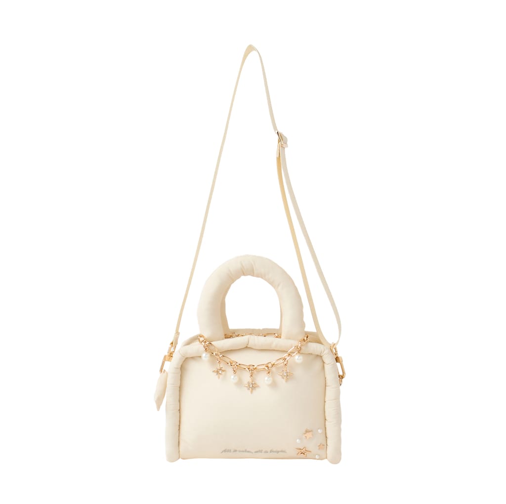 ・取り外し可能なショルダーベルトが付属しています。バッグ本体サイド部分の金具にとりつけてお使いください。ベルトは長さのご調節が可能です。(約65cm〜116cm)ハンドル中央部分にマグネットが入っている仕様です。チャームは付属品です。ご使用時の紛失等にはお気をつけください。またお洋服等への引っ掛けには十分にご注意ください。