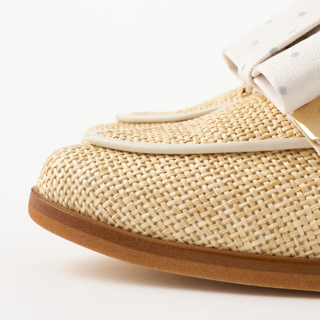 色・素材:ベージュパナマキジ/アイボリードットキジ