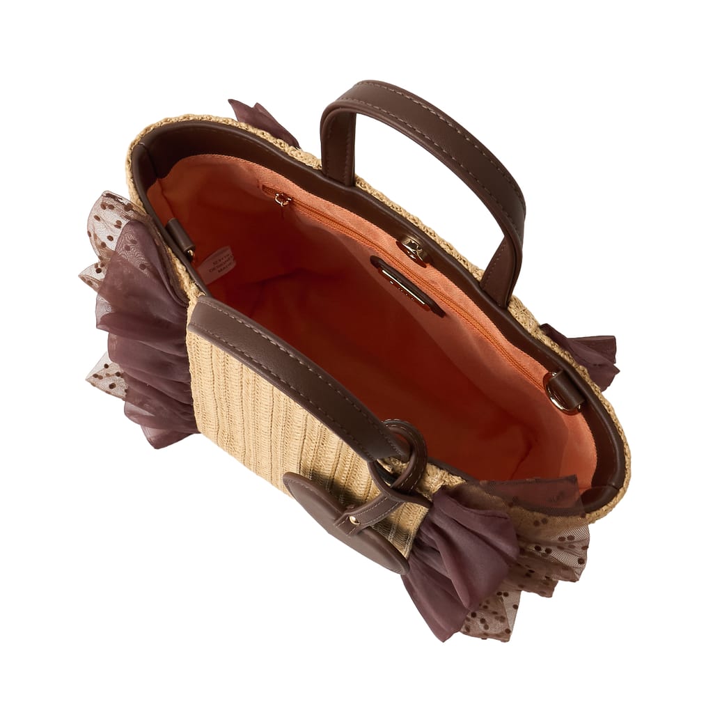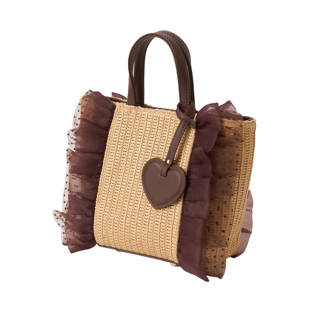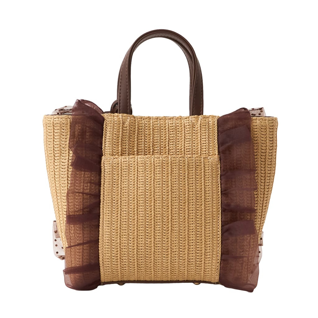 色・素材:ダークブラウンゴウヒスムース/ベージュザツザイドットチュール