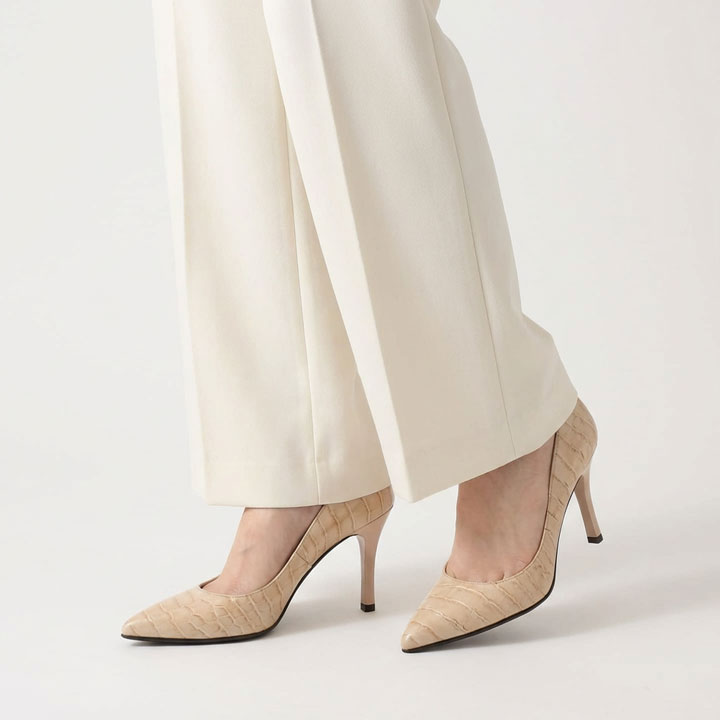 靴は、足長、足囲、足幅が設計された「木型」と呼ばれる靴型をベースに製作されます。ダイアナではブランドごとに、木型に特徴があります。「DIANA」を含む当社のブランドのほとんどは、JIS規格の女性「D木型」が目安となっておりますが、「DIANA WELLFIT」は「EE木型」となっており、足幅の広いタイプです。