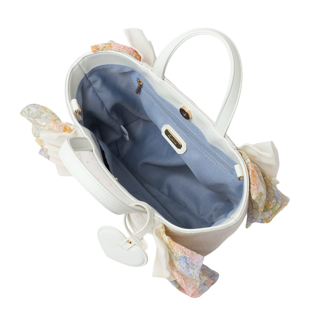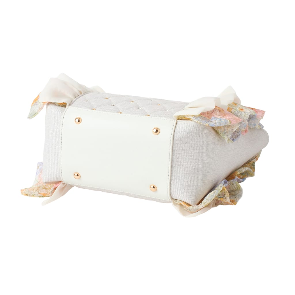 ・生地素材は水濡れや汚れ、引っかけ等には弱いためご使用の際はご注意ください。またビジューは強い衝撃が加わると脱落する恐れがあります。