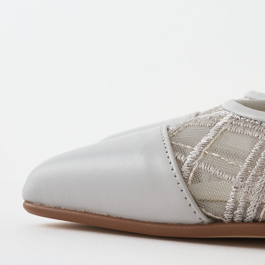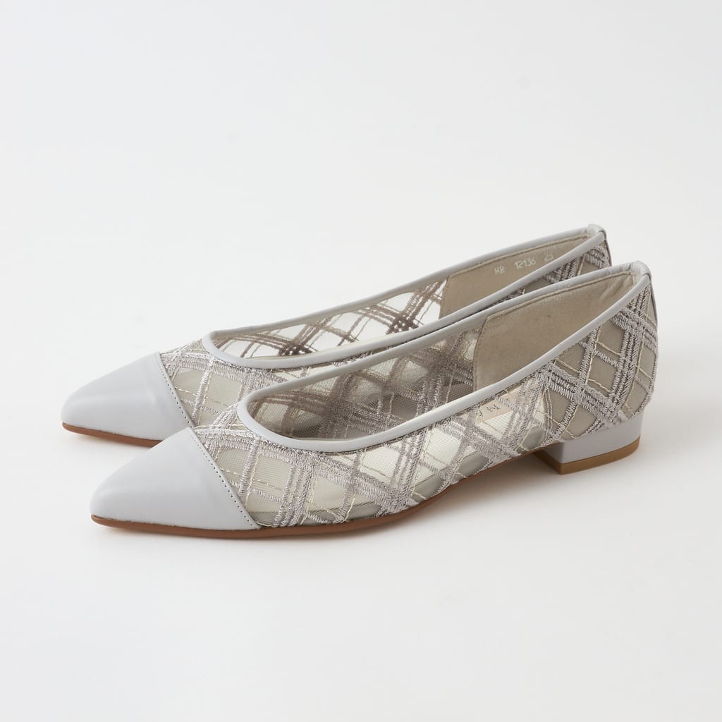 ・本体:オリジナル刺繍チュール つま先切り替え、テープ:牛革
