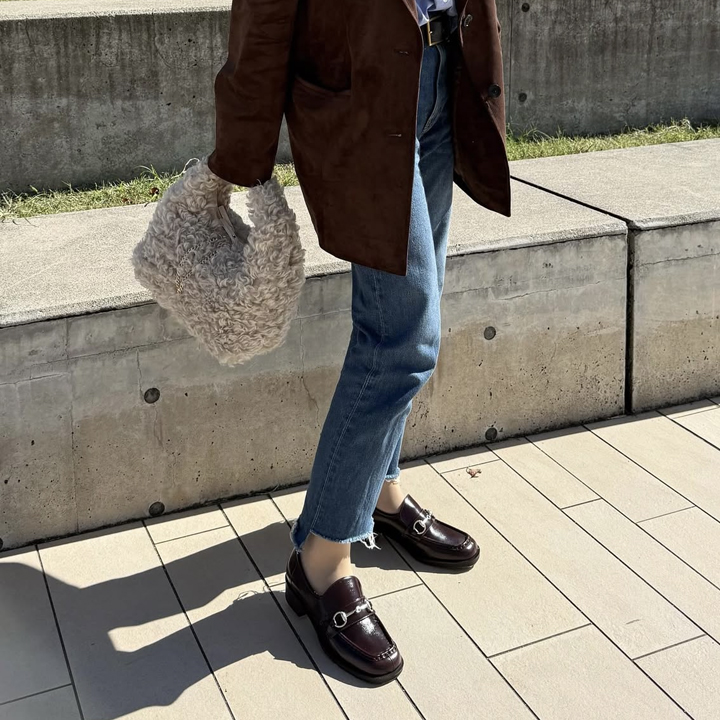 ⇒ダークブラウン牛革とダルメシアン柄のファー素材コンビになります。